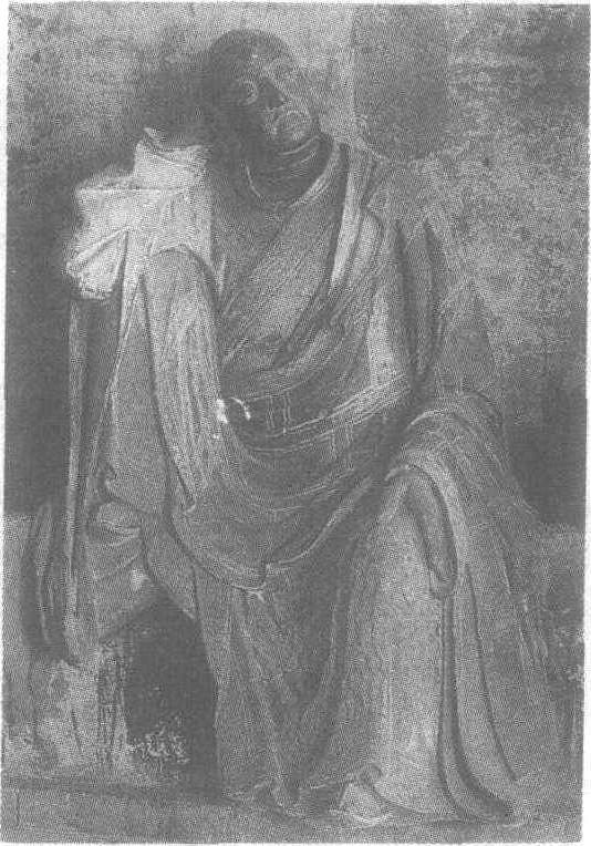 | 释义 | 彩塑睡罗汉像元。通高130厘米。山西省晋城市青莲寺内塑像。青莲寺在晋城市东南12.5公里的峡石山中。该寺释迦殿内塑释迦佛本尊坐像及文殊、普贤二弟子。东、西配殿楼上各塑广法天尊、十六罗汉、地藏菩萨和十殿阎罗,个个栩栩如生。此睡罗汉为东配殿的十六罗汉之一。罗汉内穿右衽长衫,衣缘有巴冬纹装饰,外披方格纹袈裟,足蹬青鞋,左脚自然触地,手扶膝,右脚跷于座上,肘部垫于膝上,以手托头,双目微闭,俨然入睡。塑像通体贴金。塑像在继承五代和宋代佛教造像风格的基础上,将神像加以世俗化,因而令人感到亲切自然。青莲寺见“青莲寺”条目。