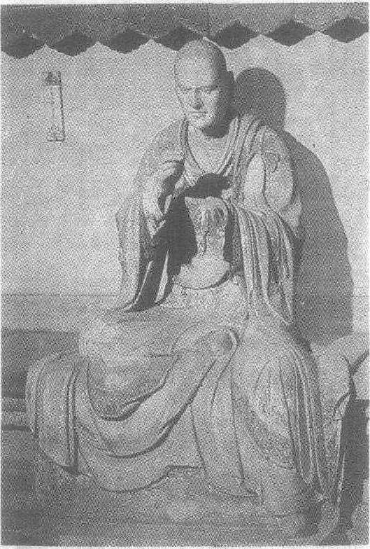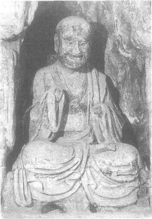 彩塑罗汉坐像北宋嘉祐年间(公元1056—1063年)。高151厘米。山东省长清县灵岩寺千佛殿内塑像。灵岩寺的罗汉坐像各具姿态,容貌性格各异,绝无雷同。此罗汉为一老者,身穿缝制精美的宽袖袈裟,上有彩绘图案装饰。双脚触地端坐于台上,衣纹随体起伏。罗汉收腹含胸,头微低,颔下压,两手掌相对举于脸前,双目微闭,面部和全身呈放松状态,俨然已经进入“静”的世界,是佛教修行练功的写实塑像。