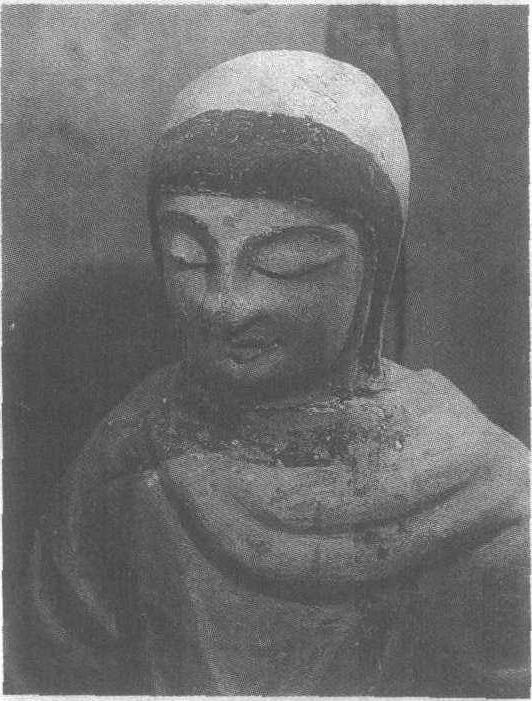| 释义 | 彩塑舍利弗像盛唐。高50厘米。甘肃省敦煌县莫高窟第46窟南龛内西侧。据佛经记载,舍利弗是古印度摩揭陀国王舍城人,为释迦牟尼的十大弟子之一。谓持戒多闻,敏捷智慧,善讲佛法,故称“智慧第一”。此尊舍利弗像结跏趺坐,头戴风帽,身披厚重的袈裟。作者着重于他脸部的刻画,其眉清目秀,敛目入定,面露一线微笑,表情含蓄聪颖。身体部分刀法简练,仅以大线条概括,说明当时的艺术表现手法已上升到很高的层次。