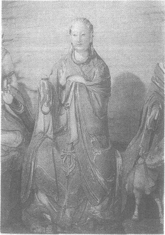 | 释义 | 彩塑虚日鼠元。通高170厘米。山西省晋城市玉皇庙内塑像。该庙位于晋城东13公里处的府城村,始建于北宋熙宁九年(公元1076年),以后各代曾予重建或扩建。西庑两殿有元塑“二十八宿星君”“十二岁星辰”。虚日鼠为二十八宿星君之一。形象取自中年贵妇,身穿宽袖绿袍,衣缘以精细的仙鹤、云纹为饰,大红披宽松随意地搭于肩上。秀发后拢,长可及肩(类似当今的披肩发)。鹅蛋形脸微鼓,额宽智足,五官纤细,目光和善。右手托鼠,左手近鼠作保护状。此塑为“二十八宿星君”中引人注目的作品之一。