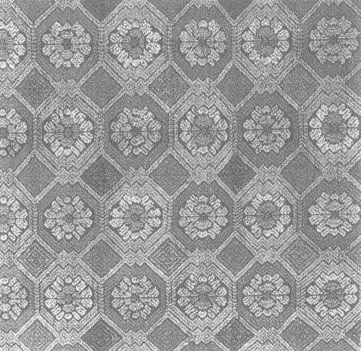 | 释义 | 彩织几何填花纹僮锦毯清。长287厘米,宽161厘米。北京故宫博物院藏。僮锦,又叫“壮锦”、“绒花被”。是用棉或麻的股纱作经线,以不加捻或者微捻两种彩纬织入起花,在织物正面和背面形成对称花纹,并将地组织完全覆盖;还有用多种彩纬挑出,纹样组织复杂的几何形图案,其色彩鲜明,对比强烈,是浓艳粗犷民族艺术手工品。此件僮锦毯是清代乾隆年间的产品,纹样是在菱形骨架内填以龟背花朵,其花是用黄、木红、肉粉、湖绿、绿、黄白、雪灰、灰等彩纬丝与棕色棉经、棉纬交织成纵6厘米、横7.8厘米的花朵。花样的形状虽雷同,但其上下左右色彩变换却较为自由。毯边用丝绒与棉纬交织成纵8.5厘米、横10.5厘米的回纹花朵。经纬密度,棉经每厘米10根,棉纬每厘米10根,丝纹纬每厘米8根,经纬、棉经、棉纬直径为0.4至0.5毫米,丝纬直径为0.8至1.5毫米。僮锦质地厚实,耐磨力强,光泽美观,适于做被面、褥面、背包、挂包、围裙、台布等,既是一种工艺美术装饰织物,又具有强烈的民族风格。
