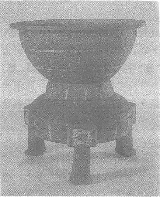 | 释义 | 彩绘三角纹陶甗西汉。高37厘米,口径34厘米。1975年河南省三门峡市上村岭7号墓出土。河南省博物馆藏。甗,古代炊蒸具,盛行于商周时期。此陶甗由一个盆形甑和一个圆形鬲组成。甑底密布气孔。陶甗的三足为方形。此器的形制是受商周时期铜甗的启发,但器形已有较大的变化。全器分层绘以红色等腰三角形及对顶等腰三角形。对顶等腰三角形每组以白、黄竖线隔开,空隙间点缀着白点。每层纹饰以黄、红、白等弦纹相隔。图案工整,色彩鲜艳,是彩绘陶器中的精致之作。