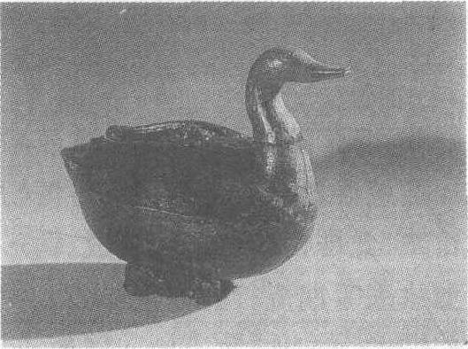 | 释义 | 彩绘描漆鸳鸯盒战国早期。长20.1厘米,宽12.5厘米,高16.5厘米。1978年湖北省随州市曾侯乙墓出土。湖北省博物馆藏。木胎。挺颈伏卧鸳鸯形。下有曲蛇状足,颈以上部分与身体榫接在一起,可自由转动、拔出。拔出后榫眼可作出水口。体中空,背开长方孔,上设带纽小盖,可开启注水。颈以上髹红漆,描黑点纹;身体在黑漆地上,以红、黄两色漆绘波折纹、圆点纹、锯齿纹等;腹两侧各有一幅图:左为撞钟图——一对凤鸟口衔编钟架相对而卧,一鸡首怪兽人立着,斜握一长杆正欲击钟。右为敲鼓舞蹈图——一穿插在树杆上的圆鼓两边,各立一个头顶倒三角形饰物、打扮成怪兽的人,一个双手击鼓,一个挥舞长袖跳舞。此盒造型生动、形态逼真,图案独特,集欣赏、实用于一体,颇具匠心。