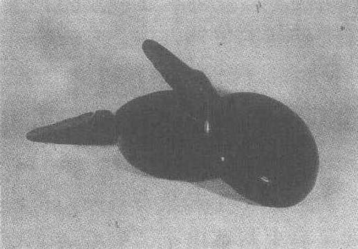 | 释义 | 彩绘鸭嘴形柄漆盒西汉晚期。高11.5厘米,口径17.5厘米,通长30厘米。安徽省天长县安乐乡汉墓出土。安徽省博物馆藏。木胎,圆形,子母口,圈足,柄作张开的鸭嘴状。在鸭颈处设榫卯结构,用手握柄,鸭嘴张则盒闭,鸭嘴闭则盒张。盒内髹朱漆,盒外在黑漆地上,绘朱漆凤鸟纹、神仙纹、云龙纹和几何纹等纹饰。此盒结构巧妙,造型别致,将一只张嘴呱呱呼叫乞食的懒鸭惟妙惟肖地表现出来。