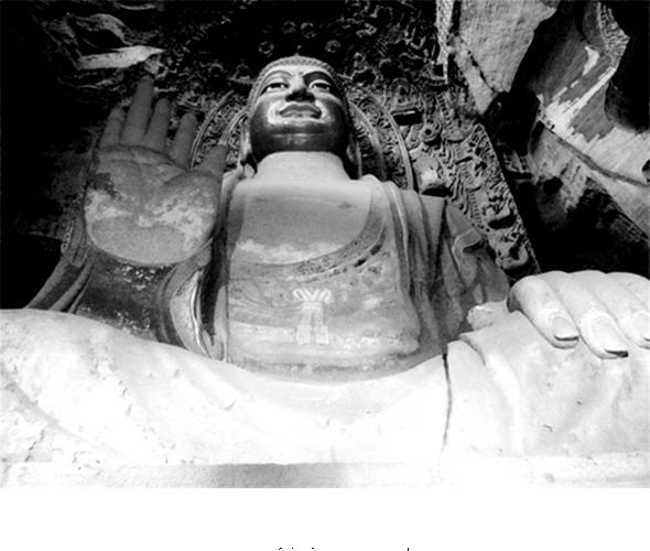 | 释义 | 彬县大佛寺石窟石窟寺。原名应福寺,后改名大庆寿寺。位于今陕西彬县城西北10公里处。石窟分为三部分: 中部为大佛窟,东南是千佛洞,西南为小窟群。大佛窟平面呈半圆形,直径21、高30米,穹庐顶。内雕一佛二菩萨,释迦牟尼佛高24米,肩宽13米,结跏趺坐于六角莲花台上。两边菩萨各高约5米,文静侍立。佛与菩萨背光雕坐佛7尊,飞天19身。窟内有龛70个,造像1000身,小者仅20厘米。窟前为50余米高的三层楼阁。千佛洞共三窟,正中为方形,两边为长方形,其内相通。窟内雕佛、菩萨像数尊,窟壁浮雕舞伎等人物像三百多幅。小窟群俗称“罗汉洞”,有4个小窟。其中3个窟内雕佛和菩萨像一尊,浮雕60多幅经变故事,并有唐宋以来游人的题记。大佛窟有贞观二年(628)题记; 其余约造于北朝时期。已公布为全国重点文物保护单位。 彬县大佛寺石窟binxiɑn dɑfosi shiku位于彬县县城西10公里大佛寺村。开凿于唐初,贞观二年(628)基本建成,此后历代多有重修。据寺内题刻记载,唐称应福寺,北宋改名庆寿寺,明以来俗称大佛寺,以阿弥陀佛造像高大雄伟而得名。全寺因山起刹,雕石成像,共130多孔石窟,错落有致地分布于约400米长的立体崖面上。共有佛龛446处,造像1980余尊,分为大佛窟、千佛洞、罗汉洞、丈八佛窟四部分,曾被清代学者毕沅誉为“关中第一奇观”。大佛窟是大佛寺最大的石窟,窟平面成半圆形,径约34米,高31米。窟内有一佛二菩萨石胎泥塑像3尊。阿弥陀佛倚崖居中,高20米,肩宽13米,手高4.5米,指长2米,宝石蓝螺髻护顶,秀眉慈目,说法印,趺坐于莲台之上。大佛头像后有2道圆形雕刻花边、7尊浮雕坐佛,附近散布着19个飞天,构成富丽祥和的背光。侍立于两侧的观世音菩萨和大势至菩萨,均身高15.6米,头戴宝冠,身着华丽缨珞,神态恬静。此外,窟内佛龛尚有造型各异的小造像400余尊。此窟规模宏大,造像庄严、雕刻精美,是唐代石窟造像艺术中的杰作之一。千佛洞位于大佛窟东侧,为中心柱室结构,由3个相连的小洞组成,两边较深,中间略小。窟中造像有300余尊,除少数为圆雕外,大部分是浮雕。四壁各龛内,大多是一佛二菩萨或一佛二弟子二菩萨,造像呈现优美的大“S”形,形象千姿百态,大多袒胸露腹,飘逸飞动,如歌如舞,反映了唐代自由开放的社会风尚。罗汉洞位于大佛窟西侧,由4个小石窟一线连缀而成,有100多个高低各异的造像。窟中以释迦牟尼佛为主像,余为其弟子、菩萨、力士、金刚等造像。释迦牟尼佛的胁侍之一是文殊菩萨,坐狮背双圆莲瓣中,气势威武。狮颈系铃,狮尾摆动,给人以长嘶奔腾的动感。丈八佛窟又称“应福寺”,在大佛窟以西200米处,沿山开凿的9孔小石窟布在崖面上。造像以丈八佛为主,高7.5米,两旁侍立菩萨均高5.8米,共有各种造像108尊,风格古朴凝重,大多破坏严重。现为全国重点文物保护单位。