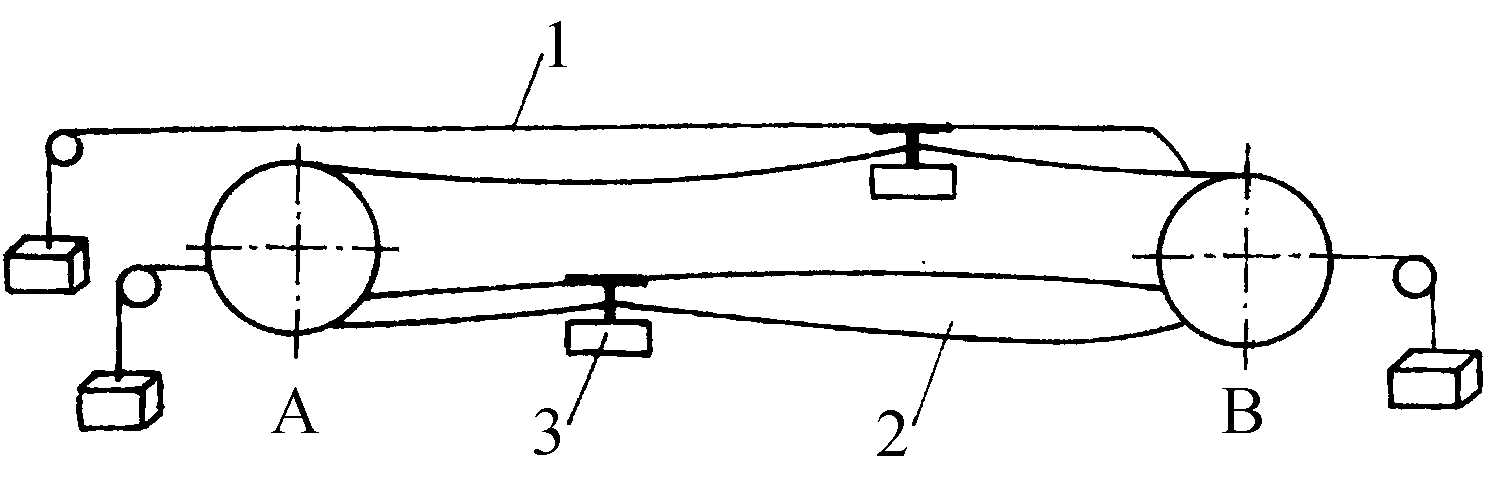 往复式索道示意图1-承载索;2-牵引索;3-客车
