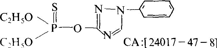 纯品为淡黄色液体,熔点2~5℃,对光照较稳定,在酸性或碱性介质中易分解。不溶于水,23℃时水中溶解度为39毫克/升,可溶于大多数有机溶剂。对高等动物毒性较高,大白鼠急性口服LD5082毫克/千克;急性经皮LD501100毫克/千克。对鱼类、蜜蜂有毒。三唑磷对害虫具有触杀、胃毒作用,兼具一定内渗作用。主要以乳油对水喷雾,用于果树、蔬菜、棉花、禾谷类作物,防治蚜虫、叶蝉、蓟马、鳞翅目幼虫、叶螨,还可防治土壤害虫,并兼治侵染叶部的线虫。 |