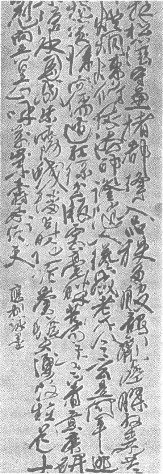 | 释义 | 徐渭行草书咏墨词轴明。纸本。纵352厘米,横102.6厘米。江苏省苏州博物馆藏。徐渭(见《徐渭草书杜甫诗轴》条目)书。《咏墨词》:“侯拜松滋,守兼楮郡,绛人品秩多般。龙剂犀胶,收来共伴灯烟。炼修依法,印证随人,才成老氏之玄。是何年,逃却杨家,归向儒边。红丝玉版霜毫畔,苦分分寸寸,着意磨研。呵来滴水,幻成紫雾蛟蟠。有时化作苍蝇大,便改妆道士衣冠。向吾皇山呼万岁,寿永同天。”款署:“应制咏墨”。通篇不拘常法,不受字距行间的束缚,满而不乱,于无法度中求法度,于纷繁中求条理,堪称精奇伟杰,是徐渭行草书法的代表作。