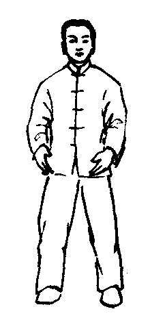 | 释义 | 三圆式站桩为适合于老年人简单易行的强身保健功法。练习时要求形、意、气、力互相配合,浑然一体。三圆即腿圆、臂圆和手圆。腿圆的目的是使两脚稳稳抓地如树生根,使腰部保持平直。臂圆、手圆是为了加强呼吸作用,并使气息运行通畅。练习时两脚分开站立,微屈膝,腰直,含胸拔背,两臂抬起与肩平,肘比肩稍低,作环抱大树状,两手心相对,也可在腹前做抱球状,眼睛微闭如垂帘,入静。(图2—4—111)初学时每天可早晚各练1次,每次5~10分钟,逐渐延长到40分钟左右,呼吸要自然。此功法对神经衰弱、高血压等慢性疾病有很好的治疗效果,并能逐渐增强人的体质,尤为适合老年人和体弱者练习。