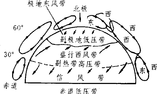 | 释义 | 三圈环流3-cellmeridional大气环流中的平均经圈环流。是只考虑太阳辐射的纬度差异和地球自转作用而形成的环流模式。在经圈垂直剖面图上,三圈环流是由低纬和高纬地区的两个按逆时针方向旋转的正环流圈以及中纬地区的一个按顺时针方向旋转的较弱的逆环流圈所组成,并分别出现在南北半球上。上述南北半球各形成的3个垂直环流圈,反映了全球大气运行总的概貌,即属一级环流。三圈环流的形成,在对流层的低层,南北半球各产生了三个风带。如北半球从低纬到高纬,分别为东北信风带、盛行西风带和极地东风带。