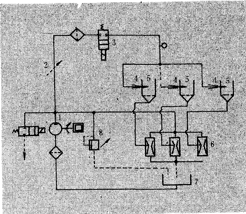 循环喷雾机示意图 1.液泵; 2.节流阀; 3.电磁线圈;4.喷头; 5.收集装置;6.泄水装置; 7. 药液箱; 8.回流调节器 使用 使用循环喷雾机进行病虫害防治作业的方法与常规喷雾作业相同。喷施除草剂须在杂草植株高于作物植株时对准杂草喷施。如采用灭生性除草剂,喷雾时要尽量减少除草剂雾滴弹跳、滚落流失和细小雾滴的飘失,以免损伤作物。故应谨慎选择合适类型和型号的喷头并选用适宜的喷施压力,如杂草与作物植株高度相差过小,除草剂也易损伤作物。 |