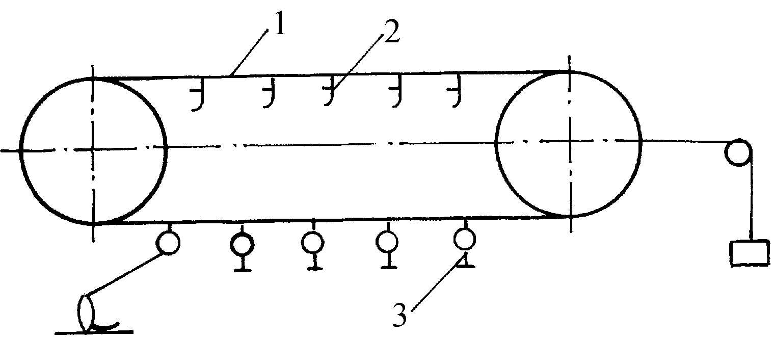 | 释义 | 循环式固定抱索器索道fixed cable-grasping device for loop-type cableway“索道”的一种。抱索器固定于运载索上,运载工具与抱索器随运载索运动而运行。其运载工具有吊厢、吊篮、吊椅、拖具等形式,运行速度一般低于1.5m/s。如下图所示。