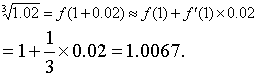| 释义 | 微分在近似计算上的应用weffen zai jinsi jisuan shangde yingyong设f (x)是可微函数. 由于当|△x|很小时,函数的改变量与微分之差| △y-dy|比|△x|小得多,而dy又比△y容易计算,所以用dy近似代替△y是有实际意义的. △y =f(x0 +△x)-f(x0)≈f′(x0)△x 计算函数改变量的近似值.❷利用公式 f (x0 +△x)≈f(x0)+f′ (x0)△x 或 f(x)≈f(x0)+f′ (x0) (x -x0) (1) 计算函数值的近似值.用微分作上述的近似计算,首先要根据问题的需要确定函数f (x);然后恰当地选择x0与△x的值,使得f (x0),f ′ (x0)容易计算,且|△x|尽可能小. 例 求 的近似值.解 可取 x0= 1,△x= 0. 02. 于是
