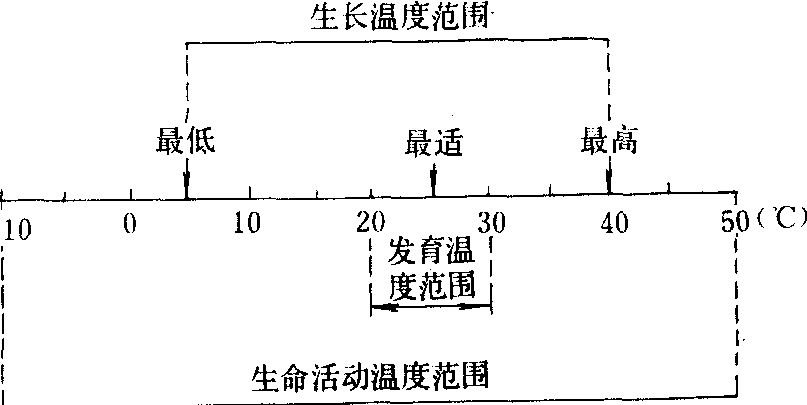 | 释义 | 三基点温度sanjidian wenduthree fundemental points of temperature作物生命活动过程的最适温度、最低温度和最高温度的总称。在最适温度下,作物生长发育迅速而良好; 在最高和最低温度下,作物停止生长发育, 但仍维持生命。如果温度继续升高或降低, 就会对作物产生不同程度的危害,直至死亡。所以在三基点温度之外, 还可以确定使植物受害或致死的最高与最低温度指标, 称为五个基本点温度。作物生命活动的各个过程都须在一定的温度范围内进行。通常维持作物生命的温度范围大致在-10℃到50℃之间,而适宜农作物生长的温度,约为5℃到40℃,农作物发育要求的温度则又在生长温度范围之内, 通常为20~30℃,三者关系如图。