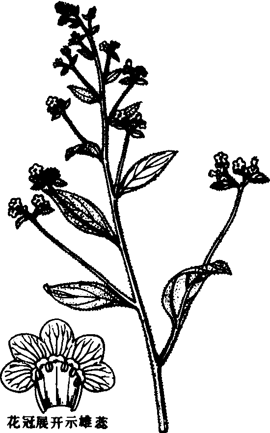 | 释义 | 微孔草microula紫草科微孔草属一年生野生草本蜜源植物。学名Microula sikkimensis(Clarke) Hemsl.。别名野菠菜。茎高20~50厘米,常自基部分枝,下部叶具长柄,叶片卵形至椭圆状披针形,茎叶均被毛。总状花序。花小,鲜蓝色。蜜腺位于子房基部。小坚果卵形。(见图)