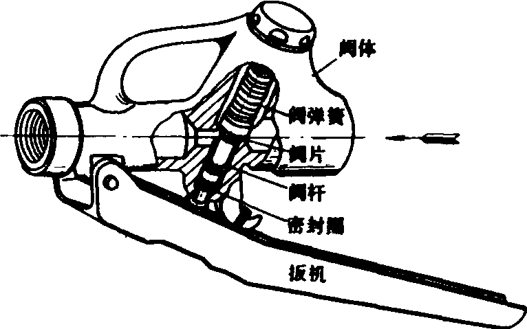 | 释义 | 快速截流阀quick-acting shut-off valve能在瞬间截断或接通液流的阀门。主要用于机动喷雾机,也可用于清洗设备和管道系统。安装在输送药液的管路中,起着控制液流快速接通或截断的作用。根据输送液体的种类和理化特性,阀门材质有金属(铜、铝、不锈钢)及工程塑料。承受压力大小取决于阀的结构,一般可以承压数百千帕到数兆帕,甚至更高的压力。阀的密封结构大体有两种,一种是平板阀,另一种是锥形阀。其密封材料可以按需要选择,如尼龙、聚四氟乙烯、丁腈橡胶、氟橡胶等,视输送液体的温度、腐蚀性等要求而异。图1为平板式快速截流阀,采用铜质阀片,它能承受较高压力(数兆帕)。阀体两端有联接螺纹,便于在管路中安装。平板阀片借助于阀弹簧的压力,紧压在阀座上,管路中液流不能流通。当揿压扳机,通过阀杆压缩弹簧时,阀片离开阀座,这时有压液体通过阀孔进入另一端,当扳机不受揿压而回位时,阀片在弹簧作用下,回到阀座上并被压紧,达到密封作用,管路液流中断。图2为锥形快速截流阀,除锥形阀杆为铜质外大部分零件用工程塑料制成,能承压数百千帕,靠弹簧压力使阀杆与阀座实现密封。药液从输液管进入阀体时,由于阀处于关闭状态而不能到达另一端喷头,当揿压扳机时药液即可通过。反之,扳机一放松,瞬间可以断流。这种阀单手操作快速通断,操作灵活轻便。快速截流阀在许多国家由专业工厂生产,并有系列化产品。