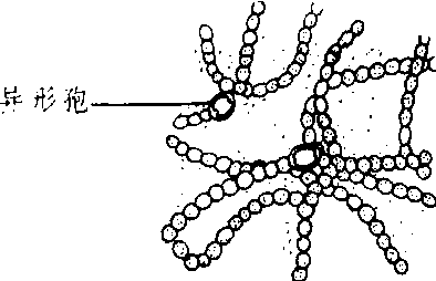 | 释义 | 念珠藻属Nostoc蓝藻门,含珠藻科。常见的固氮蓝藻。分布于淡水、湿土上。潮湿地面或草地上常有大量生长。藻体鲜时蓝绿色或橄榄绿色,干时黑褐色,由许多不分枝的丝状体聚合缠绕而构成,呈球状、泡状、丝状或不规则团块等。丝状体有或无个体胶质鞘。细胞常呈球形、短圆柱形或桶形.排成念珠状。异形胞间生于营养细胞之间,两个异形胞之间的一段丝体称藻殖段。孢子球形或长圆形。以藻殖段或孢子进行繁殖。地木耳(N.commune Vauch.)、发菜(N.flogelliforme Born.et Flah.)可作蔬菜或晒干保存。地木耳、林氏念珠藻[N. linckia (Roth.)Born.]、灰色念珠藻(N.muscorum Ag.)等多种念珠藻均具明显固氮能力,农业生产上用作稻田肥料。