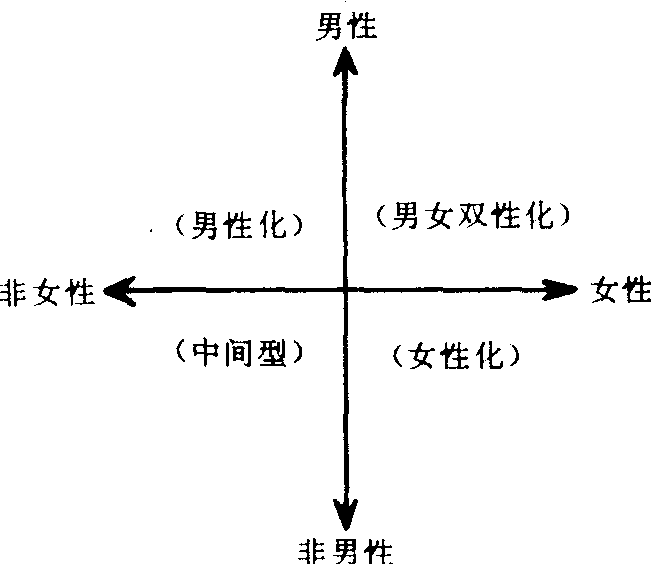 | 释义 | 性度是指一个人所具有的男性或女性心理特征的程度。1936年美国心理学家L·M·塔曼和C·C·玛依罗出版了《性和个性》一书,首次对性度进行了研究,并用测量的手段来了解性度,经过10年的研究,编制了男性度一女性度(M—F)测量表。该量表由17个部分组成,包括言语联想、墨迹图联想、知识、情绪、兴趣、个性、道德反应、内向性反应等。每一部分都由男性、女性题目构成,如兴趣部分,男性常对冒险、室外活动的工作、工具和机械类以及科学、物理现象感兴趣,而女性对家务、美化室内工作、服务性工作感兴趣。对于男性化与女性化问题,人们有不同的理解。有人认为男性化与女性化是一维的(见图1.8-4),这种观点把男性度与女性度看成是对立的,是非此即彼的关系,如果男性度高必定女性度低,反之亦然。但是有些人既男性度高,女性度也很高,而有些人既没有很明显的男子气,也没有明显的女子气。因此,男性度与女性度应为二维结构(见图1.8-5)。这样就出现了4种情况:男性化、女性化、男女双性化、中间型(即非男非女性化)。性度具有很广泛的实用意义。为人们的职业选择、学习、人际关系的处理、家庭生活的幸福等提供咨询意见。日本曾对不同职业人员进行的性度研究表明,男性中机械师、建筑师的男性度最高(见表1.8-1),艺术家的女性度高;在女性中,运动员、护士的男性度高,特别护理员的女性度最高。因此在职业选择中应考虑性度问题。性度还与学习内容的选择有关,一般来说,女性度高的对情感的、情节性的、人生的、悲剧式的对象感兴趣,男性度高的对理论的、逻辑的、社会历史的内容感兴趣。在学科选择中考虑性度问题,会使人学习更轻松自如。性度还会影响到人际关系与家庭生活。如男性度高的男子与男性度高的女子相处易产生矛盾。在交往中,适宜的关系是:男性度高的男子+男性度低的男子,男性度高的男子+女性度高的女子,女性度高的女子+男性度高的女子,女性度高的女子+女性度低的女子。但是,人际交往并非绝对地依赖于性度,性度不适宜的人相互交往只要了解相互特点,也能协调如一。 图1.8-4男性度—女性度的—维图示
