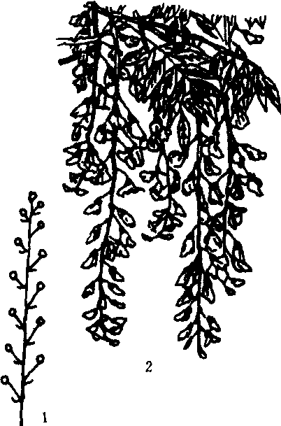 图27 总状花序1. 图解 2.紫藤的总状花序