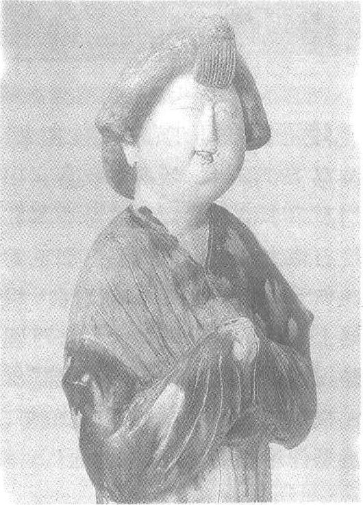 | 释义 | 三彩女立俑唐。高44厘米。1959年陕西省西安市中堡村唐墓出土。陕西省博物馆藏。女俑鬟发垂髻,弯眉细眼,小口,额饰有花钿,口旁点痣。身穿宽大绿底白花上衣,下着黄色长裙,露钩形靴尖,双手交于胸前,肩披帔巾,面带微笑,体态丰腴,为唐代贵妇模样。唐代妇女的这一典型形象,不仅反映了当时人们的审美观,也显示出盛唐社会的安定和生活富裕。唐三彩见“三彩鸭式杯”条目。