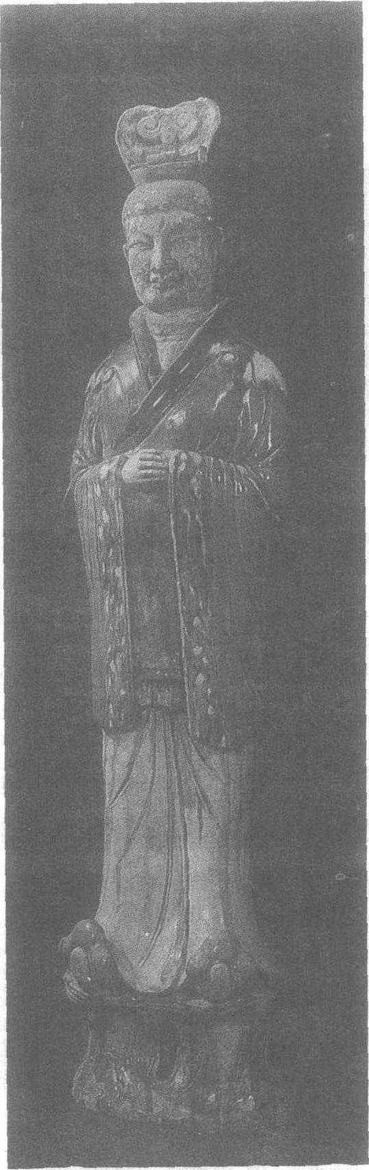 | 释义 | 三彩文官俑唐。高127厘米。河南省洛阳市出土。北京中国历史博物馆藏。俑头戴梁冠,上着褐色交领宽袖衣,宽大的袖口边镶嵌着由黄、绿、白三色构成的花边,外罩绿、黄二色构成的披肩,下穿浅黄色软裳,足蹬黄、绿相交的云头鞋,双手叠交胸前,立于束腰三彩椭圆形台座上。俑目视前方,脸上带着一种谦卑的笑容,恰当地表现了人物的心态。造型生动,刻画传神,极富内在精神的表现。唐三彩见“三彩鸭式杯”条目。