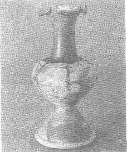 金。通高30厘米,口径15.5厘米。北京首都博物馆藏。此瓶口沿似盛开的花朵形,长颈,喇叭形足,造型轻盈俏丽。颈部以上以绿彩装饰。腹部刻大朵花叶纹,并施黄、白、绿三彩,足部以大量绿彩和黄彩装饰,是一件典型的北方瓷窑作品。