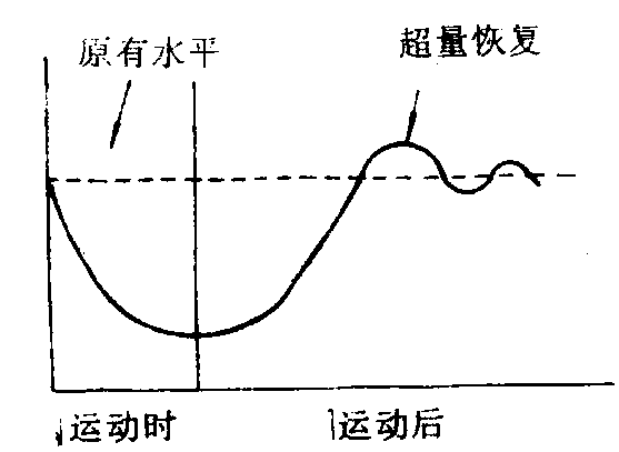 ❷运动后消耗过程减弱,恢复过程加强,此时机体的能源物质及机能能力逐渐恢复到原有水平。 ❸运动后人体的能源物质及机能能力不仅可以恢复到原有水平,而且在一段时间内还可超过原有水平,这种超过原有水平的恢复过程叫超量恢复。 出现超量恢复的程度和时间早晚与运动量大小有密切关系。在生理范围内,运动量越大,体内能源物质消耗的越多,超量恢复的幅度越大,所需要的时间越长。超量恢复是人体存在的客观规律,但在运动实践中应如何应用,尚需进行深入地研究。 |