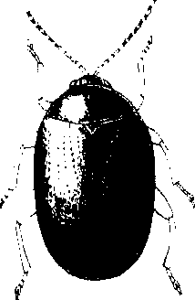 | 释义 | 恶性叶甲citrus bud feederClitea metallica Chen,又称恶性橘啮跳甲。昆虫纲,鞘翅目,叶甲科。分布于越南;中国的浙江、江西、湖南、福建、广东、广西、四川、云南、贵州均有分布。寄主为柑属植物。雌成虫体长3~3.8 mm,雄虫体较小。体长椭圆形,蓝黑色,有金属光泽。从触角基部至复眼后缘有一倒“八”字形沟纹。前胸背板及鞘翅上均有小刻点,后足股节发达,中部之前最宽,前、中足胫端无刺。末龄幼虫体长约6 mm,污黄色,前胸背板上有半月形的硬皮,分成左右两块,中、后胸两侧各有一黑色突起。中国一年发生3~7代,均以成虫在树干裂缝、霉桩、卷叶杂草或松土中越冬。成虫善跳跃,有假死性。雌成虫具多次交配习性,卵多产于叶正面叶尖或叶背边缘及叶尖上;幼虫共3龄,群居为害,排出的粪便常黏在背上,老熟后沿枝干下爬,在地衣、苔藓、枯枝、树穴或土中化蛹。宜加强橘园栽培管理,清除越冬和化蛹场所;将黄猄蚁巢挂在柑橘树上,使蚁群捕食叶甲卵和幼虫;第1代幼虫期喷药保梢可减轻危害。