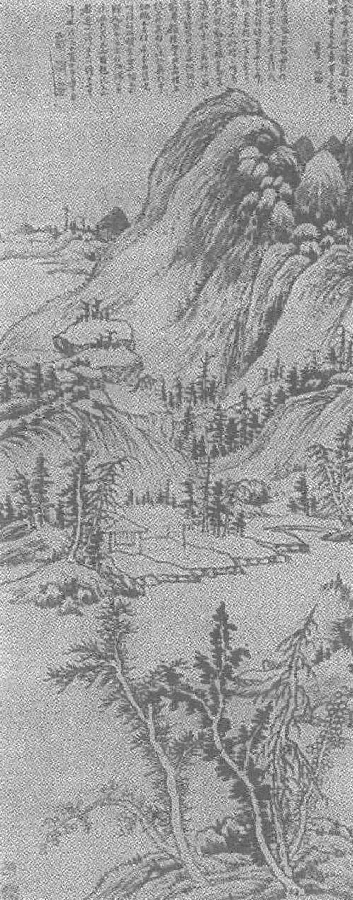 | 释义 | 恽向秋林平远图轴明崇祯戊寅(公元1638年)。恽向绘。纸本墨笔。纵148.8厘米,横61.5厘米。上海博物馆藏。恽向(公元1586—1655年),原名本初,后改今名。字道生,号香山(翁),江苏常州人。崇祯年间举贤良方正,授中翰之职,不久弃官归故里。他好诗文,善山水。山水初宗宋人董源、巨然,气力沉厚,墨气淋漓。晚年学倪瓒、黄公望,平淡自然,用笔干枯而得山水雄浑之气。著有《画旨》。传世作品有《秋亭嘉树图轴》、《青山绮皓图轴》、《仿古山水图册》、《日濯清泉图轴》等。此为恽向传世作品中较为优秀的一幅:近景平坡上,数株杂树以不同的勾枝、勾叶法及不同墨色绘成,干涩萧疏,与清江对岸几栋清冷的屋舍隔水相望。屋舍后的树木纵横交错。披麻皴和荷叶皴交替描摹远岫,山势气厚力沉,高旷深远。图的上方有作者署款及二方印章。画面采用平远法构图,布局平稳,墨色苍润,意境清新淡雅,颇似黄公望的风格。