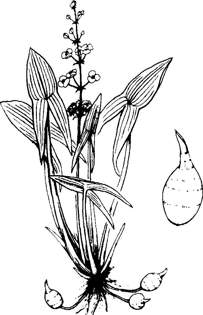 同属植物,见于应用的还有浮叶慈姑(S. subula-ta var. subulata)。 慈姑arrowheadSagittaria sagittifolia L.,又称慈菰、水萍、田酥、茨姑、茈菰、剪刀草、燕尾菜。泽泻科,慈姑属。多年生草本植物。2n=2x=22。原产中国。亚洲、欧洲、非洲温带、热带地区均有分布。植株直立。须根系具细小分枝,无根毛。茎分为短缩茎、匍匐茎和球茎。短缩茎腋芽萌动在土中生长为匍匐茎,匍匐茎顶端窜出泥面发叶生根成为分株。秋季匍匐茎末端膨大形成卵圆或圆形的球茎,为产品及繁殖器官。叶箭形。花白色。瘦果,扁平,有翼。用种子繁殖当年只结小球茎,生产上都用球茎顶芽繁殖。球茎可生食、煮食、炒食和制淀粉。
