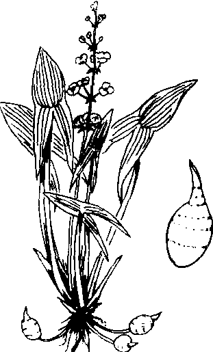 慈 姑 主要品种 ❶侉老乌: 球茎圆形,皮色青带紫,品质粗,成熟较早; ❷沙姑: 球茎卵圆,皮色黄白,品质优,早熟, ❸白慈姑: 球茎扁圆,皮白色,品质优,抗逆性强,中晚熟; ❹沈荡慈姑: 球茎扁圆,皮色淡黄,品质一般,中晚熟; ❺苏州黄: 球茎卵圆,皮黄色,品质优,晚熟。 生长发育和球茎形成 慈姑的生育期一般分为发芽期、植株生长期及球茎形成期。 发芽期 萌芽始温14℃,球茎顶芽鳞片张开,抽生1~2片叶。此期利用球茎贮存养分维持生长,需保持3厘米左右的浅水层,以提高土温,促使植株生叶、发根。 植株生长期 植株抽生正常的箭形叶至球茎开始膨大,初时每隔7~10天抽生一片新叶,平均气温25~28℃时,5天左右长出一片新叶。植株具7片大叶时,地下短缩茎发生匍匐茎。每长一片叶,发生一条匍匐茎。此期内植株生长迅速,要求肥水供应充足,宜适当加深水层(10~15厘米),避免植株生长过旺,延迟球茎形成。 球茎形成期 球茎开始膨大至采收,约需30天。此期气温下降,光合产物向匍匐茎末端转运、积累,形成球茎。此期内气候冷凉,日照较短,阳光充足,水层较浅,叶片不早衰,可促球茎形成。 栽培技术 选具有本品种特征、匍匐茎短而密集、单株球茎数10~14个的优良植株为种株。育苗移栽,须选用肥大端正、顶芽粗短而稍弯曲的球茎作“种”。用整个球茎或取其顶芽播种。1月至3月,在15℃以上和适宜的湿度中进行催芽,出芽后栽植或插芽育苗。平均气温在15℃以上时可直播。 栽种慈姑宜选低洼地或肥沃稻田,要求平坦和充分耙耘,施足有机肥作基肥。立秋后,球茎开始形成,可追施磷、钾肥。栽植规格,应考虑品种熟性和定植期。一般以每亩栽4 000多株为宜。慈姑幼苗需除去老根老叶,留几条新根和3~4片嫩叶,定植后易发根成活。慈姑对水分要求较高,各生长期水层深浅的调节:一般在定植后浅水(3厘米),旺盛生长期水层8~10厘米,球茎形成期水层3厘米。慈姑叶面积系数以1.5为宜。发生匍匐茎和球茎形成期间,对叶片生长要促、控结合,除去老叶、黄叶,保留5~8片绿叶,注意通风透光,提高光合作用效能,减少植株养分消耗及病虫害发生。 老匍匐茎形成的球茎小,大小不均,需摘除,以促进新匍匐茎的发生和形成球茎。中国广州菜农常在霜降至立冬期间离植株6~9厘米处用刀插入土中10~15厘米转割一周,把老根和匍匐茎割断,俗称“圈根”;台湾多用手摘除部分匍匐茎,并排干田水,控制植株缓慢生长,促使养分转向匍匐茎供球茎形成。 霜降后采收,分2~3次收完。贮藏方法有田间贮藏、露天贮藏和水控贮藏等,以田间贮藏最简便,效果好。当球茎成熟后,排干田水,每隔5行开沟,降低水位,以后经常注意排除积水,让球茎贮藏于田间。 病虫害及防治 主要病害有叶黑粉病(Doassansiahoriana),为真菌病。发生在高温多湿季节,叶片出现黄色突起疱斑,内有黑点。及时清除病叶、老叶,用代森锌液喷雾。 慈姑Chinese arrowheadSagittaria sagitti-folia,别名剪刀草、燕子草。泽泻科慈姑属多年生草本植物。染色体数2n=2x=22。须根肉质,无根毛。有匍匐茎、球茎及短缩茎,每株约有匍匐茎10多条,气温高时,匍匐茎可长叶生根,成为新株;气温低时匍匐茎向土壤深处生长,积累养分形成球茎。球茎卵形或近球形,先端具顶芽。叶箭形,叶柄长,着生于短缩茎上。总状花序,雌雄异花,花白色,花梗从叶腋间抽出,花期6~8月。果期6~10月。原产中国,以长江流域以南为多。非洲、欧洲、亚洲的温带和热带有分布。多用球茎繁殖。宜低洼、肥沃的平坦地栽种,对水分要求较高,需注意通风透光。立秋后球茎开始形成。园林中可用以美化水边及低洼沼泽地带。