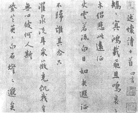 | 释义 | 憨山和尚行书诗牍明。纸本。每页纵23.5厘米,横11.8厘米。山东省济南市博物馆藏。憨山和尚(嘉靖二十五年—天启三年,即公元1546—1623年),明代佛教史上最有影响的四大僧人之一。名德清,字澄印,号憨山。俗姓蔡,全椒(今安徽)人。自幼受佛教的影响,12岁入寺院读儒家书,17岁能宣讲四书,赋诗,文为诸生冠,19岁在金陵栖霞山落发,后远游燕晋,久居五台山,声日渐显。憨山的书法颇俱根底,书师唐人欧阳询、虞世南。有《楞严通议》、《观楞迦经记》、《憨山老人梦游全集》传世。此行书诗牍共6页,封面题“憨山和尚诗牍”,内有四言诗十首,据诗后题识,诗作于万历38年。行书用笔挺劲平稳,笔锋圆润,墨气酣畅,章法布局顺序有致,有秀润平淡之感。