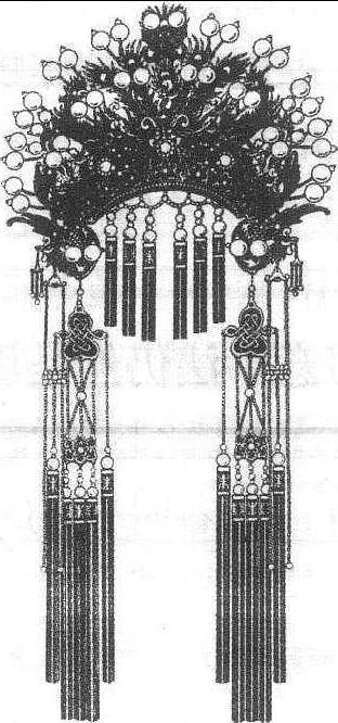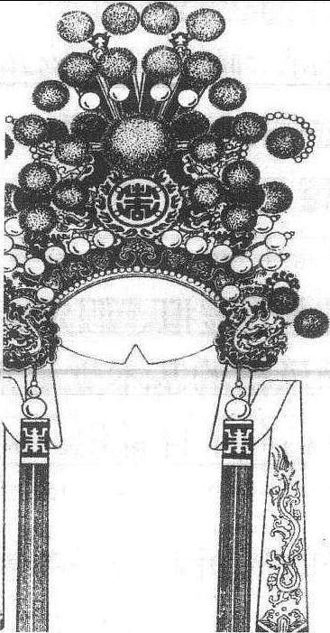 | 释义 | 戏曲的盔帽与鞋靴戏曲角色所戴的盔帽种类很多,主要分为冠、盔、巾、帽四类。冠是帝王贵族的帽子,盔是武将所戴,巾是软的 一类帽子。帽的种类很多,有草帽、纱帽、太监帽等。盔帽还有一些附属品种,像驸马套翅、翎子、狐尾、相貂等。这些附件一方面是说明人物的身份、地位,如驸马套翅插在纱帽上,表示人物为驸马,相貂则必须有宰相地位的人才能佩带; 另方面也能起美化作用,像狐尾是表示番邦角色的,但 《文姬归汉》中蔡文姬所佩狐尾也能美化演员造型。像翎子这样的附件还能做表演用具,《小宴》一剧中吕布便用“耍翎子” 来表现他的骄傲自得心态。
