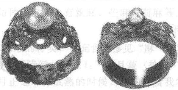 | 释义 | 戒指jièzhǐ也作“戒子”“戒止”。❶指环的别称。套在手指上做纪念或装饰用的小环,用金属或玉石等物制成。相传古时为宫女避幸的一种标记,当某一宫女处于妊娠或月辰(经期)期间,必须在右手套以金环,以戒帝王“御幸”:平时则用银环。因其有“禁戒”之用,故名“戒指”。元代以前多称“指环”。明代以后则称“戒指”。元熊梦祥《析津志·岁纪》:“资正院中正院进上,系南城织染局总管府管办,金条、彩索、金珠、翠花、面靥、花钿、奇石、戒止、香粉、胭脂。”《二刻拍案惊奇》第九卷:“素梅写着几个字,手上除下一个累金戒指儿,答他玉蟾蜍之赠,叫龙香拿去。”明无名氏《天水冰山录》记严嵩被籍没家产中,有“金厢宝石水晶戒指一十九个,共重二两六钱,内猫睛一颗”;“乌银戒指五十个,共重四两七钱”。《醒世姻缘传》第七十二回:“周龙皋从袖子里掏出来两方首帕,两股钗子,四个戒指,一对宝簪,递与媒婆手内。”都卬《三余赘笔·戒指》:“今世俗用金银为环,置于妇人指间,谓之戒指。按《诗》注:古者后妃群妾以礼进御于君,女史书其月日,授之以环,以进退之。生子月辰,以金环退之;当御者,以银环进之,著于左手,既御者著于右手。事无大小,记以成法,则世俗之名戒指者,有自来矣。”刘元卿《贤奕编》卷四:“古者后妃群妾,进御君所,当御者以银环进之,娠则以金环退之,进者著右手,退者著左手,即今之戒指,又云手记。”顾起元《客座赘语·女饰》:“金玉追炼约于指间曰戒指。”清顾张思《土风录》卷五:“妇女喜戴戒指,男子渐亦效之。或金、或玉,或玛瑙、蜜蜡、翡翠。” 戒指古代妇女最常用、最喜爱的手饰。原称“指环”,又称“环”、“约指”、“手记”和“代指”等。明都印《三余赘笔》云: “今世俗用金银为环,置妇人指间,谓之戒指。按《诗》注,古者后妃群妾以礼进御于君,女史书其月日,授之以环,以进退之。生子月辰,以金环退之;当御者,以银环进之,著于左手;既御者,著于右手。事无大小,记以成法,则世俗之名 ‘戒指’者,自有来矣。”原来在古时,戒指不仅是一种饰物,还是宫廷妃嫔用以避忌的一种标记。当一位后妃有了身孕或处在月经期间,就在左手套上金环,以示禁戒。这也就是“戒指”一名的来历。古代指环主要由骨、石、铜、铁、金、银及各种宝石制成。以金为指环,始于两汉。汉以后,黄金成了制作指环的主要材料,历朝盛行不衰。