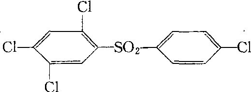 | 释义 | 三氯杀螨砜tetradifon又称TDN。有机氯类杀螨剂。化学名称:2,4,5,4′-四氯二苯砜。化学结构式如下。纯品为无色无味结晶,熔点145~146℃,20℃时蒸气压为320.0 ×10-10 Pa,挥发性很小。几乎不溶于水,微溶于丙酮、醇,较易溶于氯仿、苯和二恶烷。对酸、碱、高温及紫外线稳定。对螨卵有强触杀作用,影响螨卵的发育,使卵不能孵化,并能破坏雌成螨的生殖机能,造成雌螨不育。对初孵幼螨也有良好的杀灭效果,可以杀死对有机磷农药产生抗性的螨类。喷洒叶片后,有一定渗透作用,杀死叶片另一面的螨卵。可以防治棉花、柑橘及其他大田作物的叶螨及其他螨类。在螨卵盛期或成螨最少期施药。残效期25天左右。对高等动物几乎无毒,大鼠急性口服LD50>14 700 mg/kg,兔急性经皮LD50为10 000 mg/kg。