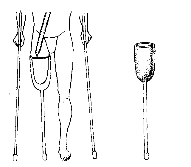 | 释义 | 截肢病人的护理截肢术是将肢体的一部分由身体上截离的一种手术方法。截肢手术是在用各种方法治疗无效的情况下,或为了挽救病人的生命才采用的。截肢后会给病人的工作和生活带来很多不便,因此,术前必须做好病人的思想工作,向病人讲明做手术的必要性,以及不做手术的危害和后果,使病人能接受手术。手术后注意抬高患肢残端,密切观察注意有无出血,发现问题及时处理。使用夹板固定残肢使残肢保持功能位,避免屈曲挛缩畸形而影响安装假肢。截肢后病人常感觉有幻肢痛,要向病人耐心解释,一般可随时间的推移而自行消失。下肢截肢后,在患肢尚不能进行锻炼时应积极进行上肢及健侧下肢的锻炼,以便增加肌力为用拐做好准备工作。待伤口完全愈合后即可开始截肢残端的功能锻炼。用弹力绷带包扎压迫残端可促进局部软组织收缩,还可对残端进行按摩,拍打,并用残端蹬踩。术后3~4周即可安装临时假肢(用石膏或塑料做托,下部用木棍支持,图2—2—64),以便锻炼残端承受压力和重量,促进残端软组织收缩定型,为安装假肢做好准备。术后6个月可安装正式假肢,安装假肢后开始时可用拐辅助练习行走,待完全掌握后可去拐独立行走。