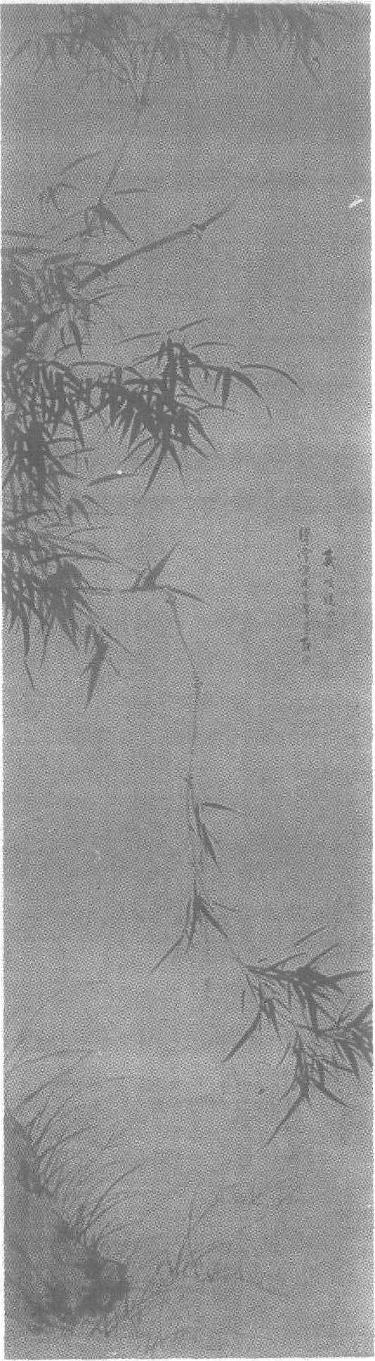 | 释义 | 戴明说墨竹图轴清。戴明说绘。绫本墨笔。纵189厘米,横54.8厘米。北京故宫博物院藏。戴明说,生卒年不详,字道默,号岩荦,晚号定圃,河北沧县人。明崇祯七年(公元1634年)进士,清顺治十三年(公元1656年)擢户部尚书,顺治十七年(公元1660年)去官。工书画,善画墨竹,得吴镇法,生动洒脱。尤精山水,王铎评其为博大奇奥,不让古人。著有《定圃集》。此幅画墨竹一丛,从左侧向右伸出,一枝向上伸展;一枝向右,叶梢已经折断;一枝向右下低垂。风姿绰约,姿态万千,竹叶繁密而不杂乱,墨色浓淡适宜,层次感强。左下画坡石一角,略作皴染,坡石旁,水波荡漾,石上、水中的杂草随风摇曳,与下垂的竹枝上下呼应。构图巧妙,新颖别致。自识:“戴明说为绎堂老先生年画正。”下钤〈戴明说印〉、〈道默〉两方印。