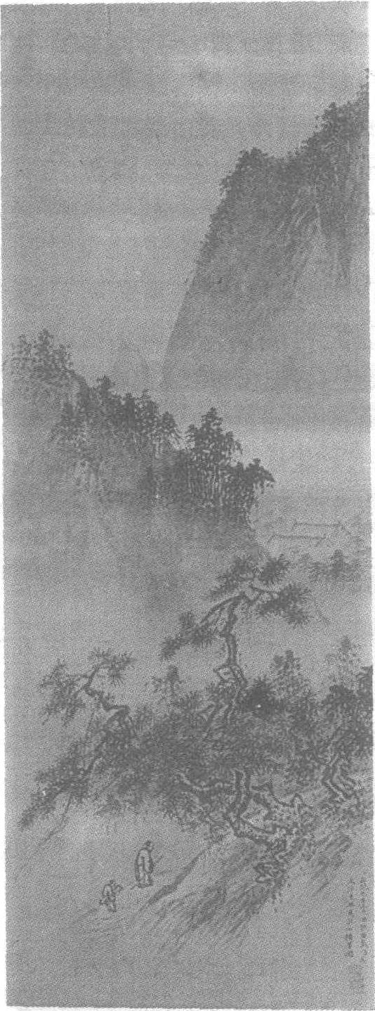 | 释义 | 戴进春山积翠图轴明。戴进(见《戴进风雨归舟图轴》条目)绘。纸本墨笔。纵141厘米,横53.4厘米。上海博物馆藏。图中雄峰耸峙,巍峨峭拔,雾色迷濛,幽谷深寂。山间草木华滋,两盈屋顶隐现林中,近处坡峦之上斜生几株古松,曲干虬枝,苍劲挺拔。松下一位老者策杖徐行,抱琴童子跟随其后。布局简妙空灵,笔调舒和,山形轮廓轻浅。坡岩林木吸取了近似“董巨”的条子皴、苔点等笔法,墨色润淡,而苍松用笔劲健有力,以浓墨写成,又可窥见马、夏之余韵。两种不同的画风在这里得到了和谐的统一。此图作于正统已巳上元日,即正统十四年,公元1449年,作者时年61岁。