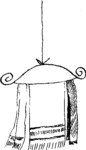 用铁丝制成一弓形,在其弦上并列挂三条手巾,中间为白色,两边为绿、红色,表示店内出售各种手巾。