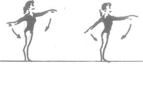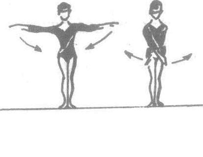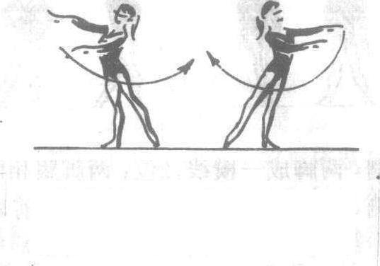 两臂同时向前、后摆动 ❷两臂同时向左、右侧摆动。