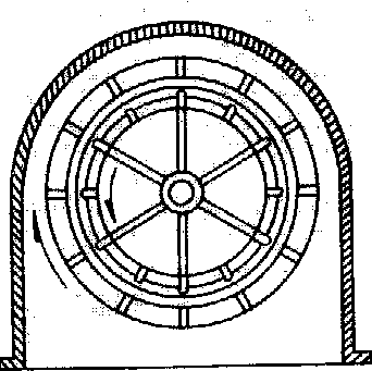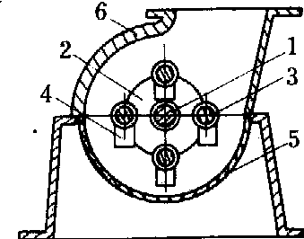 图1 叶轮式打磨机 锤式打磨机 结构如图2。主要工作部件是转子,转子上铰接着锤板,转子和机壳之间有固定筛板。工作时,锤板在离心力的作用下呈辐射状甩动,打击送入机内的碎料或粗刨花,达到再碎的目的。锤式打磨机的优点是对原料的原始形态要求较宽,可以进行农作物秸秆等非木质原料的加工。但是加工出的细刨花形态较差。