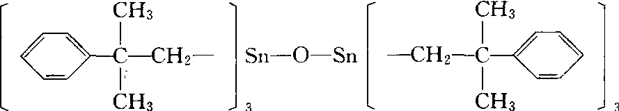 | 释义 | 托尔克fenbutatin oxide又称苯丁锡。有机锡类杀螨剂。化学名称:双〔三(2-甲基-2-苯基丙基)锡〕氧化物。化学结构式如下。原药为白色晶体,熔点138~139.5℃,25℃时蒸气压为666.6×10-8Pa。不溶于水,也难溶于大多数有机溶剂。对光、氧、酸都很稳定。长效、感温型杀螨剂,对害螨主要是触杀作用。对幼螨和成、若螨的杀伤力较强,但对卵的杀伤力不大。起始毒力缓慢,残效期可达2~5个月。气温22℃以上药效高,低于15℃药效较差。对有机磷和有机氯产生抗性的螨类不产生交互抗性。适于苹果、柑橘、茶及花卉防治叶螨、锈螨及瘿螨。对人、畜低毒,大鼠急性口服LD50为2 631 mg/kg,急性经皮LD50>1 000 mg/kg,急性吸入LC50为1.83 mg/L。对眼黏膜、皮肤及呼吸道刺激性较大。对鱼类有高毒,对鸟、蜜蜂低毒。