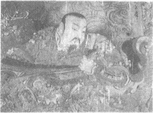 | 释义 | 三界诸神图(玄天上帝)壁画明。纵50厘米,横60厘米。河北省石家庄市西北郊上京村毗卢寺后殿东壁下层北部壁画。玄天上帝又名真武大帝,在古代神话中是主宰北方天体之神。画面上的玄天上帝身穿铠甲,腰缠玉带,未戴冠,发后拢。人物头以下的部位笔道粗犷,设色浓烈,而细致的画工则集中于头部。玄天上帝面庞线条圆润,凤眼、高鼻、薄唇,其头发、眉毛、胡须毫发毕现,十分细腻。人物形象端庄,威武雄壮的外表和文雅、沉稳的性格特征,使人不仅感到勇敢,而且还能感觉到更丰富的内涵。可见画匠的画笔所表达的是形神兼备的人物形象,不愧为一幅优秀之作。