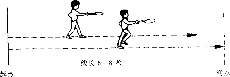 场地 在室内空地画两条相距1. 5至2米的直线,长6至8米。直线两端各画一条横线,分别为起点和终点。