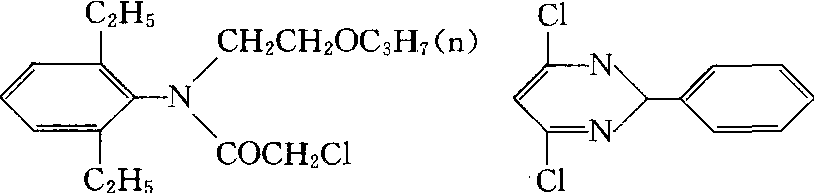 | 释义 | 扫茀特Sofit酰胺类内吸选择性除草剂。由除草活性部分丙草胺与安全剂复合而成。丙草胺的化学名称:α-氯-2-6′-二乙基-N-(2-丙氧乙基)乙酰替苯胺,安全剂的化学名称:4,6-二氯-2-苯基嘧啶。化学结构式如下。丙草胺纯品为无色液体,密度1.076(20℃),沸点135℃(0.133 Pa),20℃时蒸气压133.322 ×10-6Pa,闪点>35℃。微溶于水,易溶于大多数有机溶剂。安全剂为无色结晶,熔点96.6℃ ,20℃时蒸气压1129.9×10-5Pa,几乎不溶于水,微溶于有机溶剂。芽前除草剂,可通过植物下胚轴、中胚轴、胚芽鞘和根部吸收,在体内传导,直接干扰蛋白质合成,多糖核蛋白体的形成,抑制细胞的有丝分裂,间接影响光合作用和呼吸作用,使杂草死亡。适于水稻秧田或水直播稻田使用,防除稗草、千金子、牛筋草、泽泻、水苋菜、异型莎草、鸭舌草、节节菜、萤蔺、丁香蓼等。南方水稻秧田或水直播田播后2~4天,水稻生根后使用,北方在播后10~15天施药。对人、畜低毒,丙草胺大鼠急性经口LD50为6 099 mg/kg,急性经皮LD50>3 100 mg/kg,急性吸入LC50>2 800 mg/m3。对眼和皮肤有刺激作用,对鱼类有毒。安全剂大鼠急性口服LD50>5 000 mg/kg,急性经皮LD50>2 000 mg/kg。