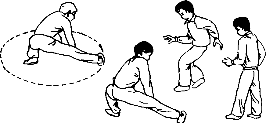 适用于5—6年级。可以发展学生腿部力量, 提高身体灵巧性。场地 在室外空地进行。游戏方法 将学生分成人数相等的两个队, 成纵队站好,前后距离为一臂。教师发出开始口令后,每队排头开始做后扫腿动作,第二个同学见势迅速跳起。躲开扫腿后,立即做后扫腿动作,按上述方法,依次进行,最后以全组先做完扫腿动作为胜。