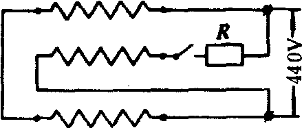 图3 三相电动机改为单相运行接线图 三相-单相混合制配电系统高压配电线路中三相负荷是不对称的,其电压损失按不对称电路的方法进行计算。当负荷接成三角形时,A、B相之间的线电压损失为: