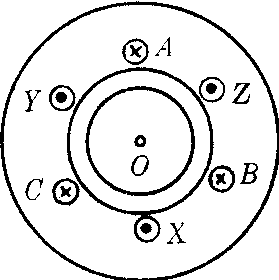 图1 所谓二极是指定子绕组通电后将定子铁心内壁划分为一对磁极,磁感应线发出的极面称为N极,磁感应线进入的极面称为S极。三相感应电动机主要由定子(电动机不动部分)和转子构成。定子包括铁心和绕组。定子铁心由硅钢片叠压而成,铁心内壁开槽,槽内安放定子绕组。定子绕组是定子的电路部分,由漆包铜(或铝)线绕成,是三组材料、匝数、线径、绕法、形状、大小完全相同的线圈,且空间位置互成120°,称为对称三相绕组。最简单情况如图1中的6个小圆圈所示,每个线圈(有许多匝)称为一相绕组。有两个直边安放在两个槽中。AX(是一个线圈)称为A相,BY(也是一个线圈)称为B相,CZ称为C相。每相绕组一个头,一个尾。A、B、C叫头,X、Y、Z叫尾。根据设计要求三相绕组可以星接(星形接法),也可以角接(三角接法)。转子包括转子铁心和转子绕组。转子铁心由硅钢片叠压而成,铁心外壁有槽,槽内安放转子绕组。转子绕组是转子的电路部分,有鼠笼转子和线绕转子两种。鼠笼转子一般为在转子铁心槽内铸铝条,两端铸铝端环,端环将各槽中铝条连接起来形成闭合回路。形状象鼠笼,其中的铝条叫笼条。图1中定、转子之间的空气缝隙称为气隙。当定子三相绕组通入三相电流后可产生旋转磁场。设通入A、B、C三相绕组的电流为