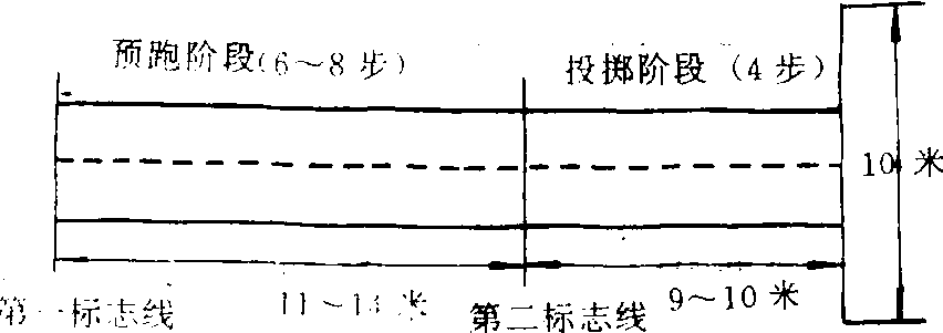 教学重点 ❶投掷步技术。参见手榴弹投掷步。 ❷完整的助跑技术。助跑应由慢到快,引弹与跑紧密结合,动作协调自然。采用加速跑、投掷步以及预跑与投掷步结合,持弹完整助跑投掷等练习,以形成完整的助跑技术。 |