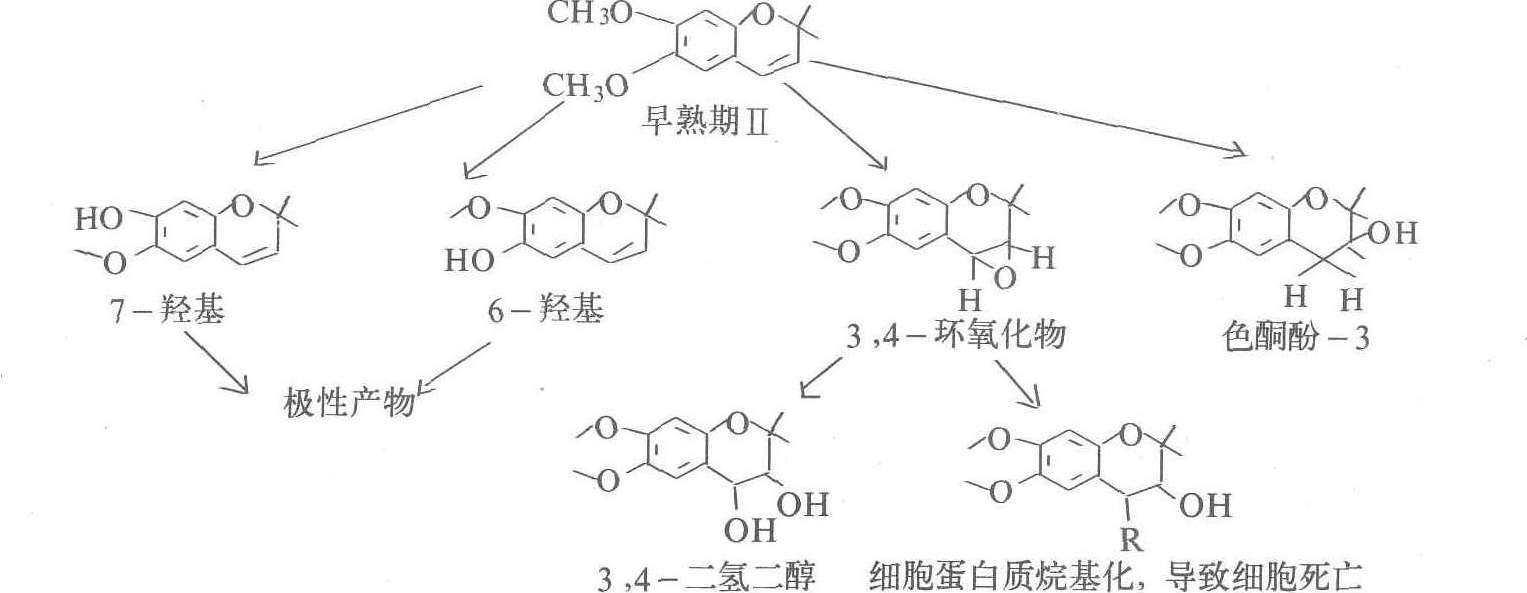 图1 早熟素生物氧化为细胞毒剂,可使咽侧体细胞成分烷基化
